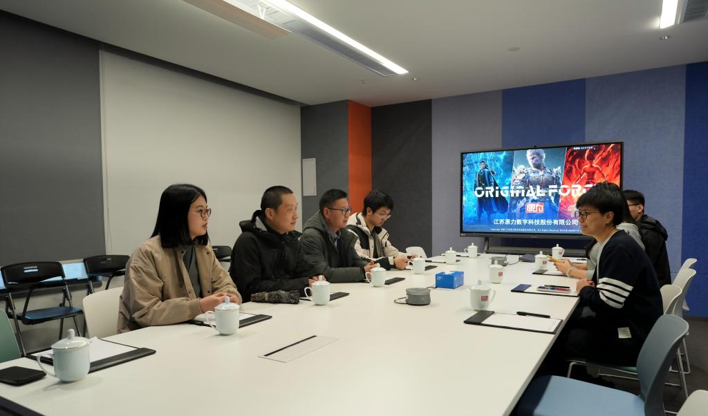 在江苏原力数字科技股份有限公司,胡振宇一行参观了动捕大棚及相关设备,观摩了企业动捕项目的技术应用与实践成果,直观感受数字内容制作前沿技术,并全面了解企业发展历程、核心业务、技术优势及行业影响力,对企业坚持科技与艺术融合的发展理念予以肯定。在南京泉峰科技有限公司,详细了解了企业发展概况、主营业务、规模布局以及工业设计领域的技术研发与人才需求,为学院精准对接企业需求、优化人才培养方案提供了重要参考。